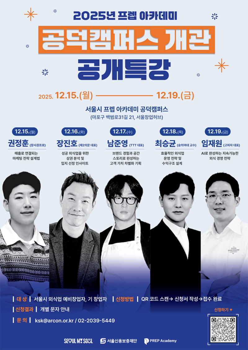 서울특별시에서 프렙 아카데미 공덕캠퍼스 개관에 따른 외식업 (예비)창업자 자립 역량을 강화할 수 있도록