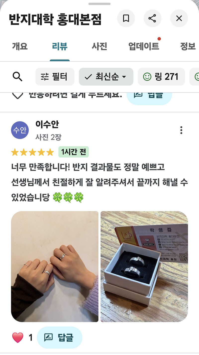 모든 검색창에 [반지대학 홍대본점] 검색해 보세요~