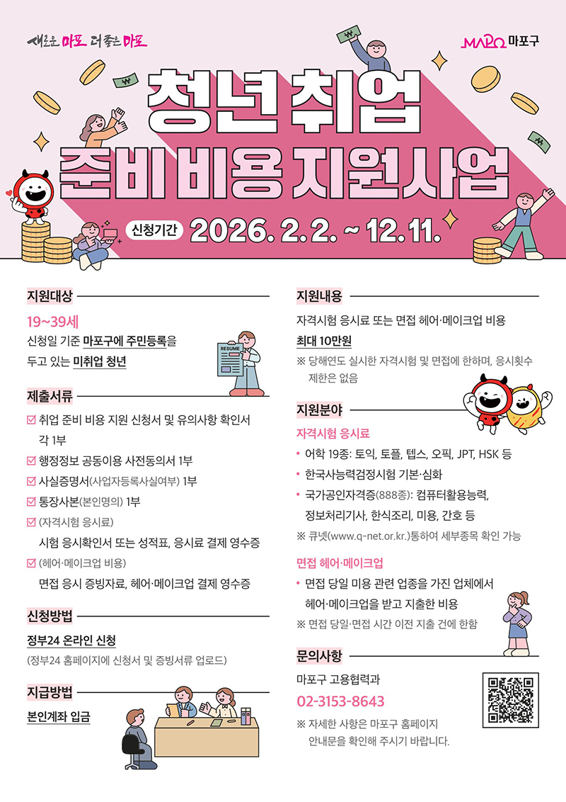 [마포구「2026년 청년 취업 준비 비용 지원사업」신청자 모집공고]