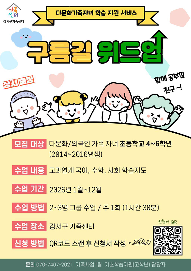 ○ 문의 : 070-7467-2021 가족사업1팀 기초학습지원(고학년) 담당자
