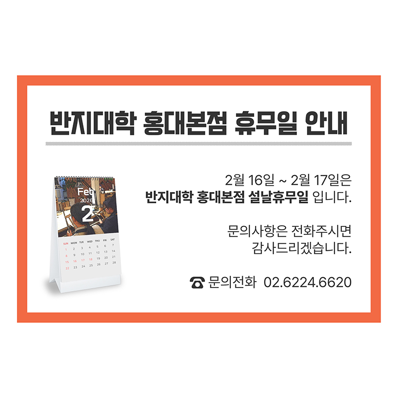 [반지대학 홍대본점 설날 휴무일 안내]