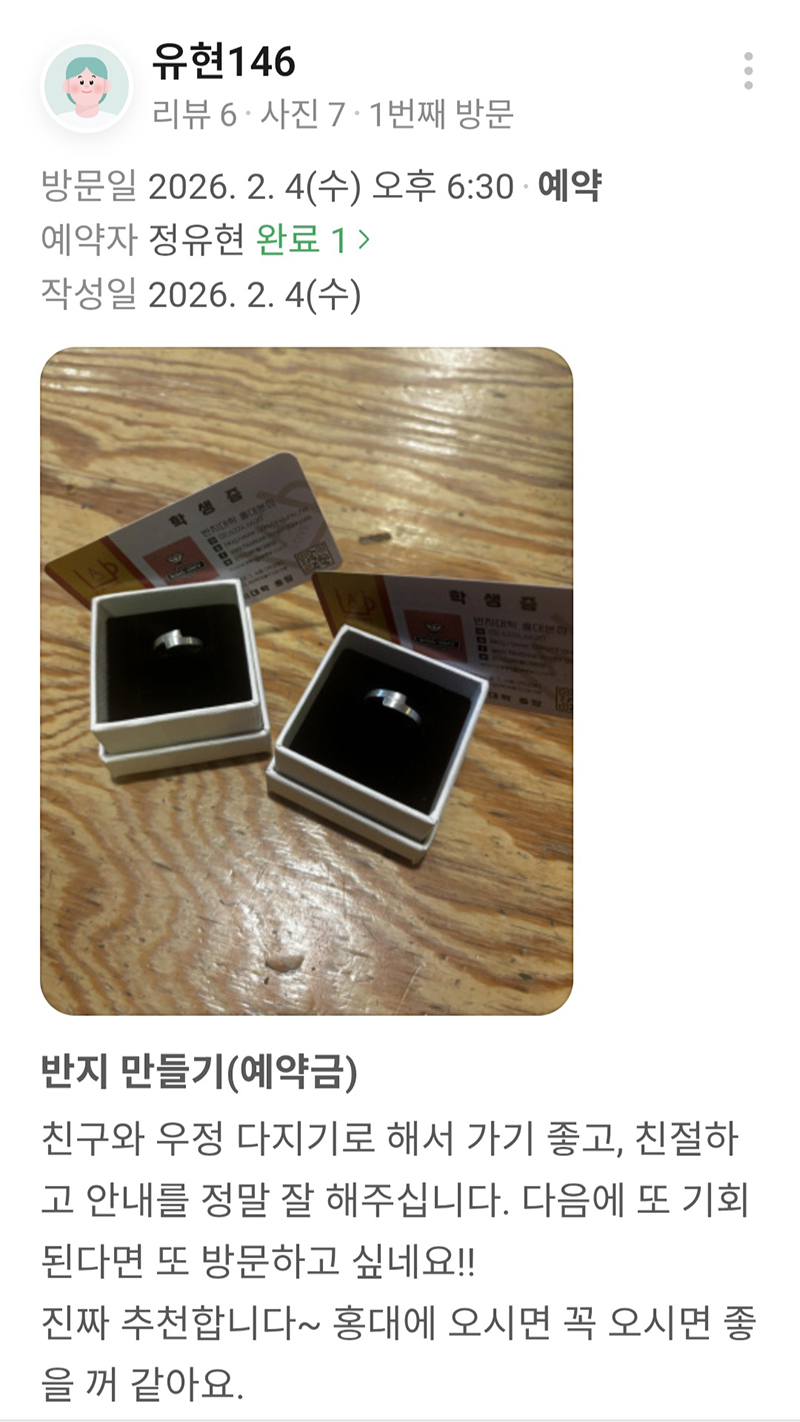 | 오늘 우리 손으로 만든 첫 반지, 사소한 하루가 기념일이 됐어요. (0) | 2026.02.09 |