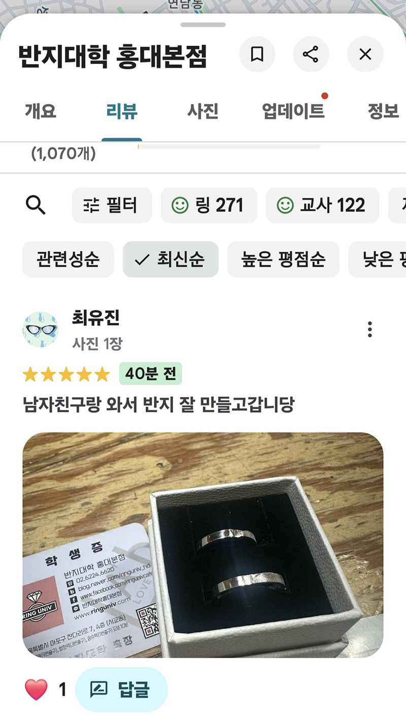 모든 검색창에 [반지대학 홍대본점] 검색해 보세요~