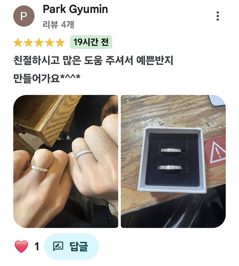 #리뷰맛집 #고객후기 #반지공방 #커플링추천 #데일리반지
