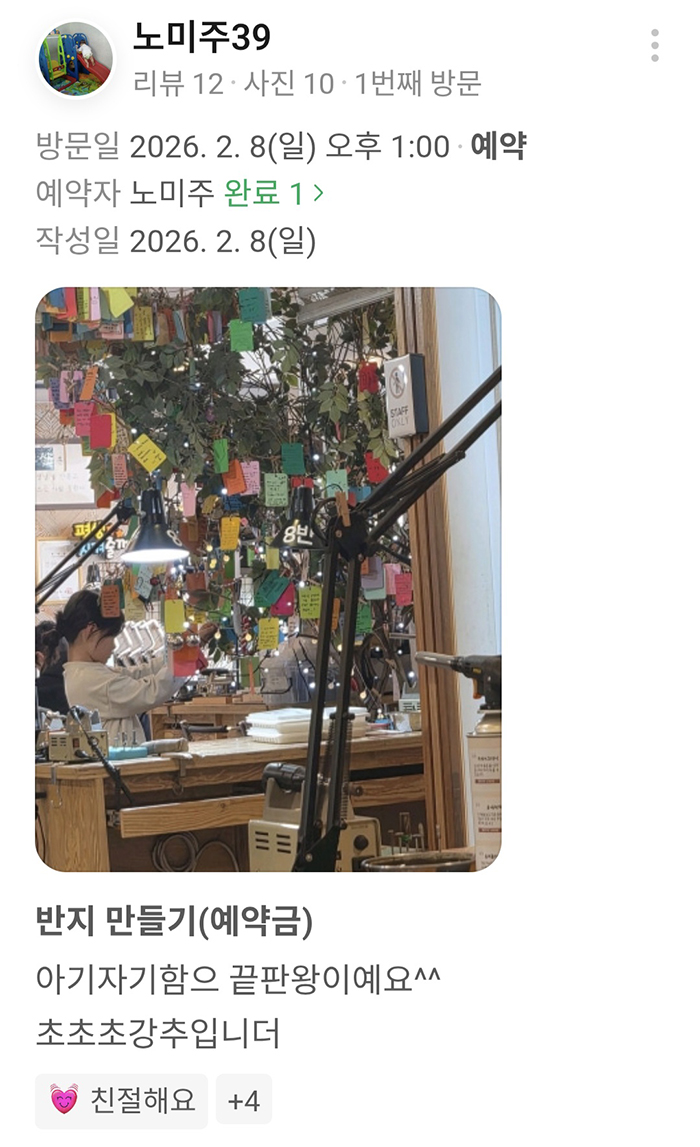 | 여행에서 사 온 기념품 대신, 우리가 직접 만든 반지가 더 특별해요. (0) | 2026.02.18 |