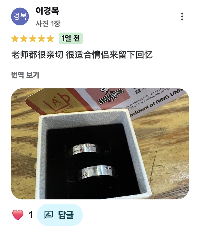 #추억을새기다 #선물하기좋은곳 #감성공방 #사랑의반지 #온화한시간