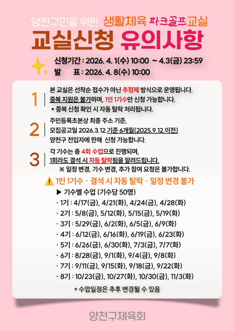 [양천구 2026년 생활체육교실(파크골프) 수강생 모집]