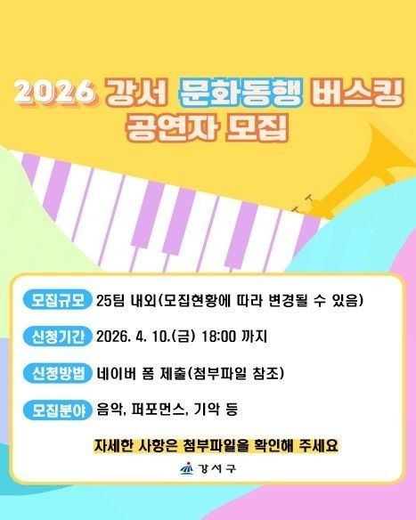 [2026년 「강서 문화동행 버스킹」 사업에 참여할 공연팀(개인)을 모집합니다.]